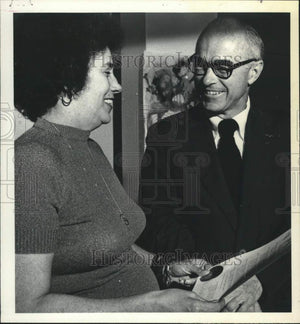 1977 Press Photo Jane Small Sanford talks with Ted Southworth, pres from C of C