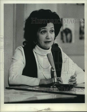 1973 Press Photo Loretta A Santoro, Cohoes, New York talks into microphone