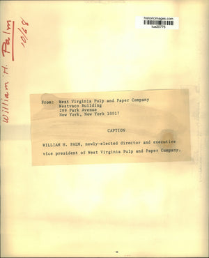 William H Palm, newly-elected director and executive vice president of West Virginia Pulp and Paper Company, New York, New York.