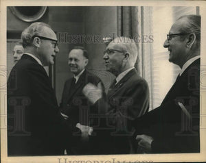 1969 Press Photo Commissioner of Education Ewald Nyquist shakes hands with men