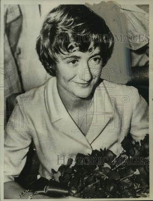 1961 Press Photo Francoise Sagan holds bouquet of roses - tua23196