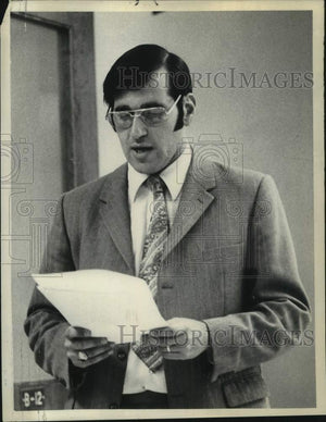 1973 Press Photo Murray E Sharkey reads from a paper - tua23394