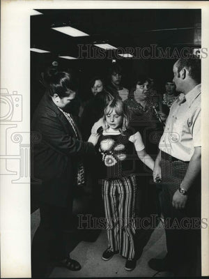 1974 Press Photo Mary Losaw walks out with a group of people - tua24651