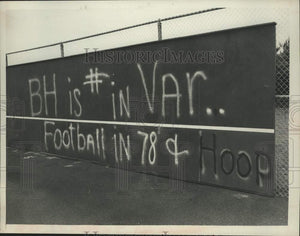 1971 Press Photo Vandalized tennis backstop, Shenendehowa Schools, New York