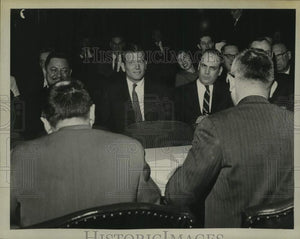Mayor John V Lindsay, New York City, sits at table in Albany, New York with other men