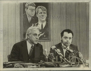 1974 Press Photo Howard Samuels and Edward McDonough speak to press in New York