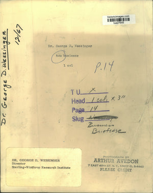 1967 Press Photo Dr. George Wessinger, Steriling-Winthrop Research Institute, NY