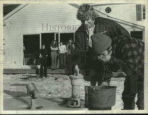 1972 Press Photo Mickey Rao & Bill Gonalez in winter scene, St. Rose College, NY