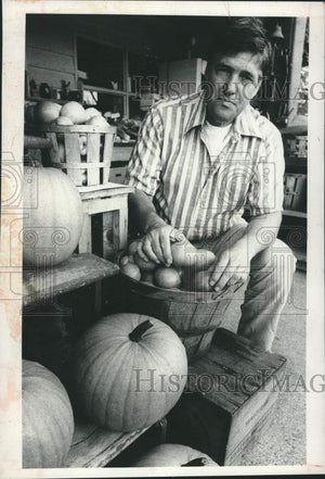 1980 Press Photo Jimmy Monalo stands next to produce at Valley Acres Farm