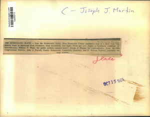 New York - Vote the Democratic ticket, these Rensselaer County candidates urge at a Meet Your Candidates Night at Sherwood Park Firehouse, East Greenbush, last night. From left are: James A. Lombard, candidate for assemblyman; William P. Wade, for public welfare commissioner; Joseph J. Martin, for representative from the 30th Congressional District; John J. Purcell, County Democratic Committee chairman, and F. Warren Travers, candidate for state senator