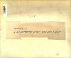 New York - Mrs. Barrington Lodge, Chairlady; Brother Robert McCann, FSC, LaSalle School Staff; and Mrs. Paul La Galce, President of CWSL