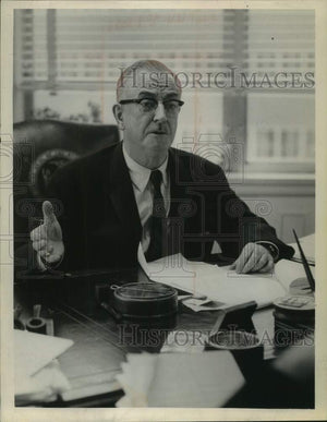1963 Press Photo Frank C Moore, NY State University Board of Trustees at desk
