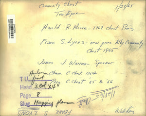 Community Chest, Ten Eyck, New York - Harold R Moore, 1964 Chest President; Frank S. Lyons, new president of Albany Community Chest 1965; and James J. Warren, Speaker and Chairman of Community Chest 1954, President of Community Chest 1955 and 1956