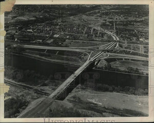 1969 Press Photo Aerial view of Patroon Island Bridge & interchange, Albany, NY