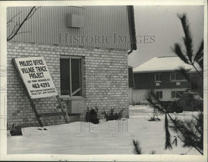 1974 Press Photo Sign leans against Village Trace apartments in Menands, NY