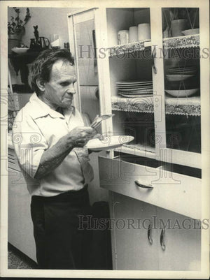 1974 Press Photo Walter Hellman stacks dishes at New York developmental center