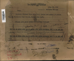 1960 Press Photo Patricia (Thelma) Ryan Nixon, Excelsior High School, California