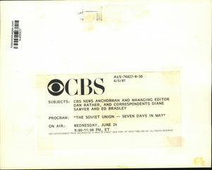 CBS News anchorman and managing editor Dan Rather and correspondents Diane Sawyer and Ed Bradley; "The Soviet Union -- Seven Days in May," Wednesday, June 24, CBS