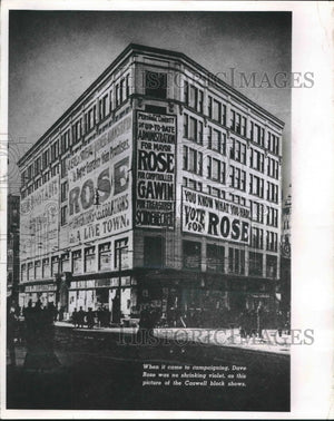 1908 Press Photo David A. Rose campaign signs on Caswell Block in Milwaukee