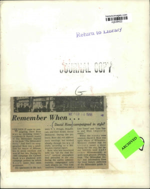 "When it came to campaigning, Dave Rose was no shrinking violet," comments H. Russell Austin of The Milwaukee Journal in his book "The Milwaukee Story." And that's no exaggeration! Rose was a candidate for mayor of Milwaukee in seven elections and won all but two. During the 1908 campaign the Caswell Block was plastered with campaign posters on which Rose's name was most prominent. His opponents in the race were T.J. Pringle, Republican, and Emil Seidel, Social Democrat. During the primary, Rose did not address mass meetings, but worked silently through his ward clubs, according to a Milwaukee Journal report. When it came to campaigning, Dave Rose was no shrinking violet, as this picture of the Caswell block shows.
