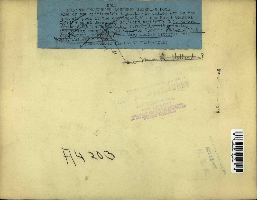 Credit - ACME and NEA Some of the distinguished guests who cooled off in the open air pool at the opening of the new Hotel General Oglethorpe at Savan…