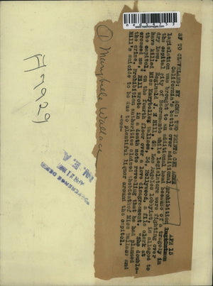 Hill a Los Angeles Lobbyist, Wallace a file clerk in Sacramento. Prohibition authorities blamed crime on liquor being in the capitol
