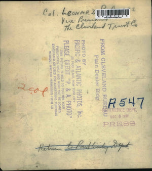 1927 Press Photo Col. Leonard Vice President The Clinland Trust Co.