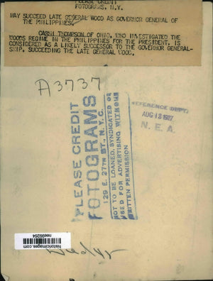 1927 Press Photo Carmi Thompson of Ohio Governor General of the Philippines