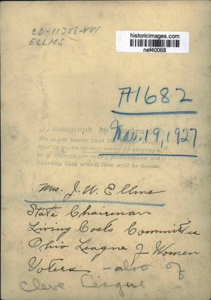 1927 Press Photo Mrs. J. W. Ellins, State Chairman Living Costs Committee, Ohio