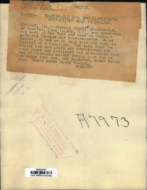 1927 Press Photo Edward Jones eloped with stepdaughter Olive Schick to Chicago