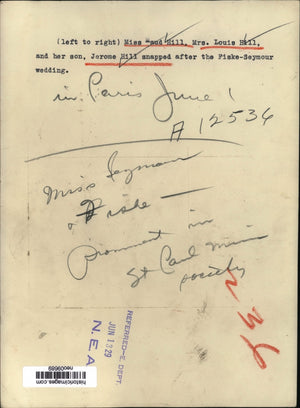 1929 Press Photo Maud Hill, Mrs Louis & Jerome Hill, Fiske-Seymour Wedding Paris
