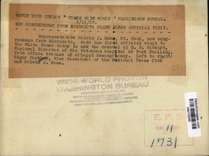 Edgar Markam & Melvin J. Mass congressman makes his first visit to the White House.