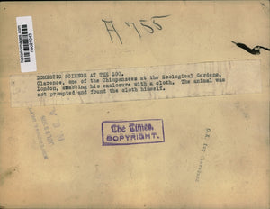 1926 Press Photo Zoological Gardens, London Chimp Swabs Enclosure with Cloth