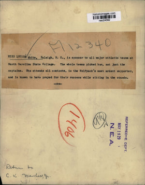 1929 Press Photo Louise White, athletics sponsor at North Carolina State College
