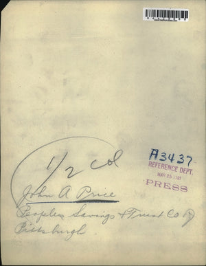 1927 Press Photo John A Price Peoples Savings & Trust Co of Pittsburgh