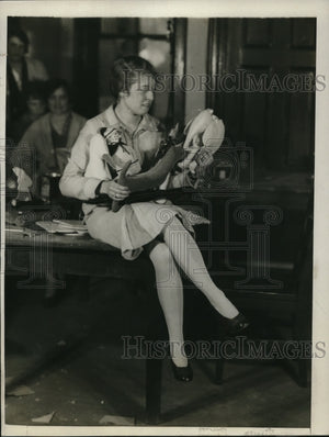 1929 Press Photo Kitty Harp holds some of the articles the teachers made