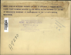 1927 Press Photo 1st Canadian Minister Vincent Massey & Secretary State Kellogg