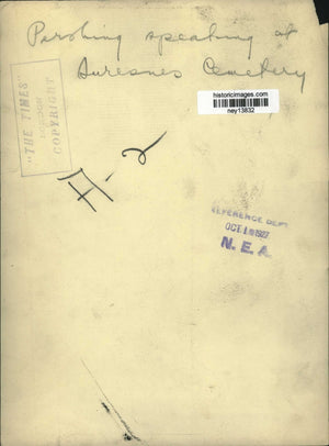 1927 Press Photo General John J. Pershing Speaking at Suresnes American Cemetery