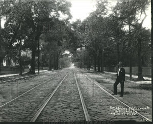 1929 Press Photo Man standing by Broadway and Benjamin Streets looking to river