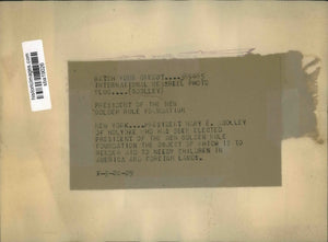 Mary E. Woolley of Holyoke has been elected President Of The Golden Rule Foundation. The object of which is to render aid to needy children in America and Foreign lands.