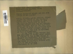 Paul Boncour French Deputy and Pillar of Socialist Party who may be induced to join the radical socialist in their proposed attack upon the new Premier Andre Tardieu despite the fact that he worked in close collaboration with the recent Briand Cabinet which is substantially the same in personnel as that of M. Tardieu. At one time it was thought that the President of France would summon M.Boncour to the Elysee Palace to request his formatio if possible of new ministry combining his own shade of Political opinion with that of the radicals