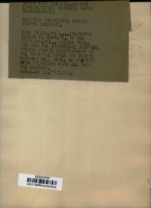 1929 Press Photo Inspector Claude Shaylor Won Police Pistol Match Championship