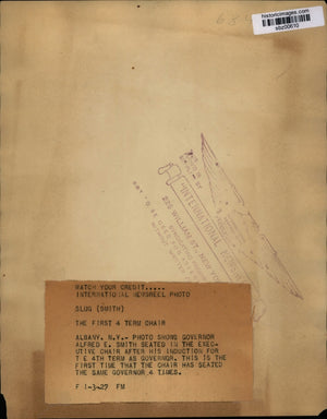 1927 Press Photo Governor Alfred E. Smith seated in the Executive chair