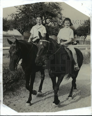1939 Press Photo Gloria Nell Hunn and Sally Brill riding on a horse - mja15064