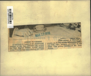 A luncheon in honor of Mr. Dunthorne, speaker of the day, preceded his lecture on "Old English Flower Prints" before Green Tree Garden club members and their guests on Friday at the Milwaukee Country club. Mrs. Swigart, president of the Green Tree group, introduced Mr. Dunthorne. Mrs. Harry M. Swigart