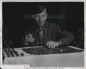 1944 Press Photo Ft Worth, Tex. Sgt Frank P Smarzik & pennies hes been saving