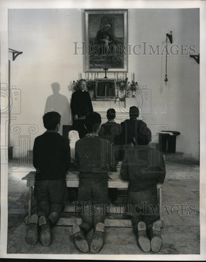 1947 Press Photo Young boys at prayer at a church service in Italy
