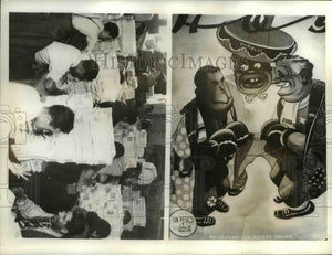 1940 Press Photo Cartoon Camacho & Almazan at newspaper, foul blow not tolerated