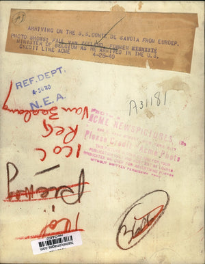 1940 Press Photo Paul Van Zeelans former Minister of Belgium arrives in US