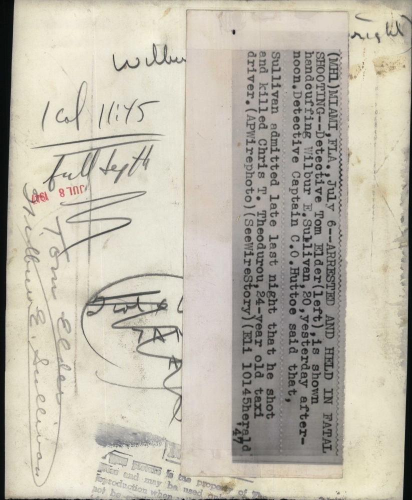1947 Press Photo Det.Tom Slder cuffing Wilber Sulliva ,for Murder